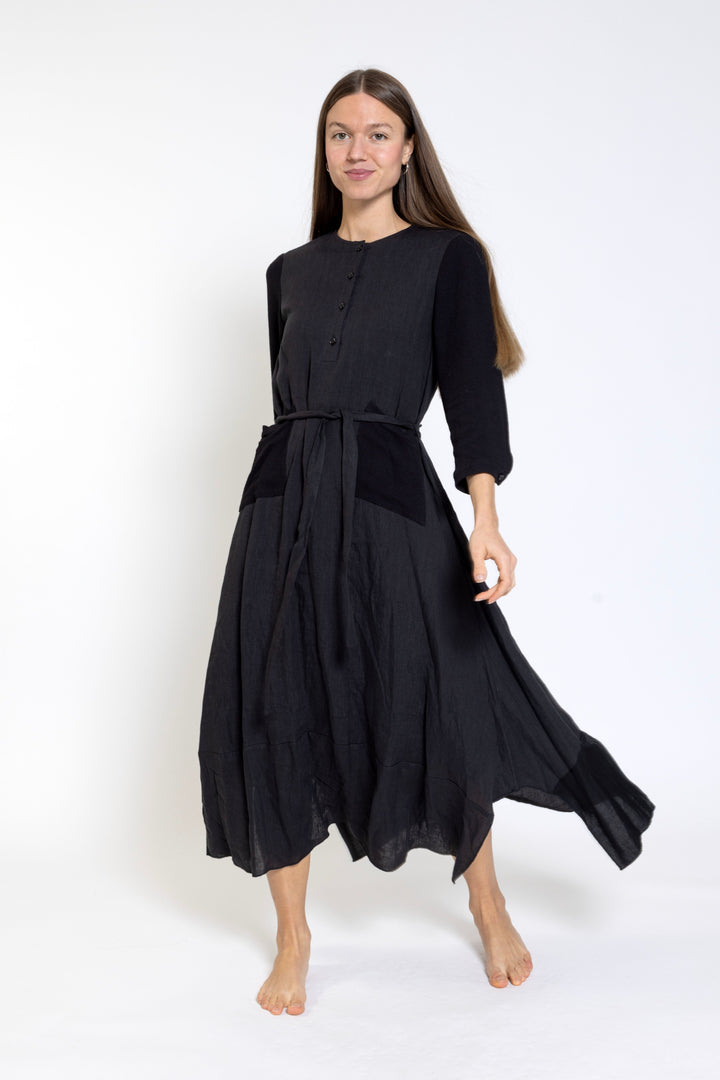 Navy Tie Waist Shirt Dress - Solid