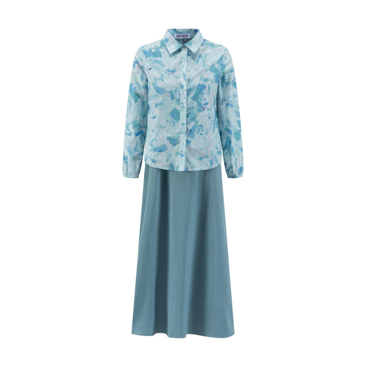 Blue Cut Velvet Printed Dress