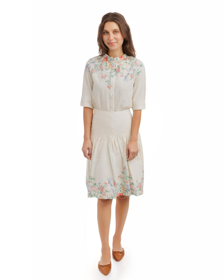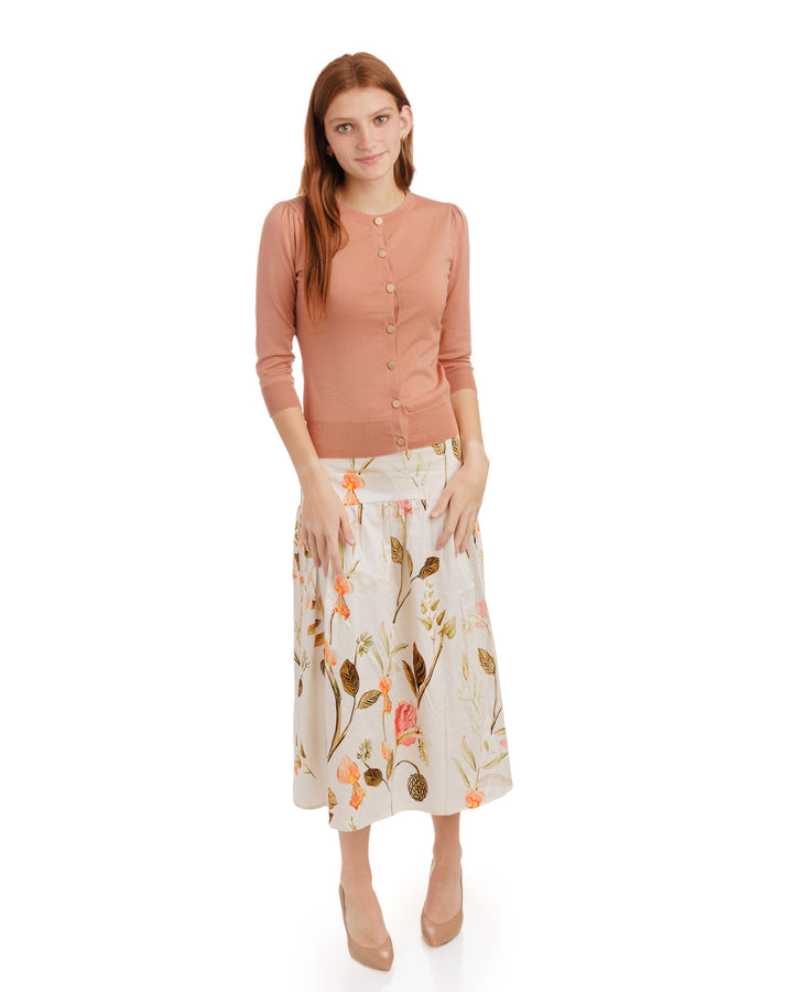 Beige Knit Top With Ruffle On Collar And Down The Side