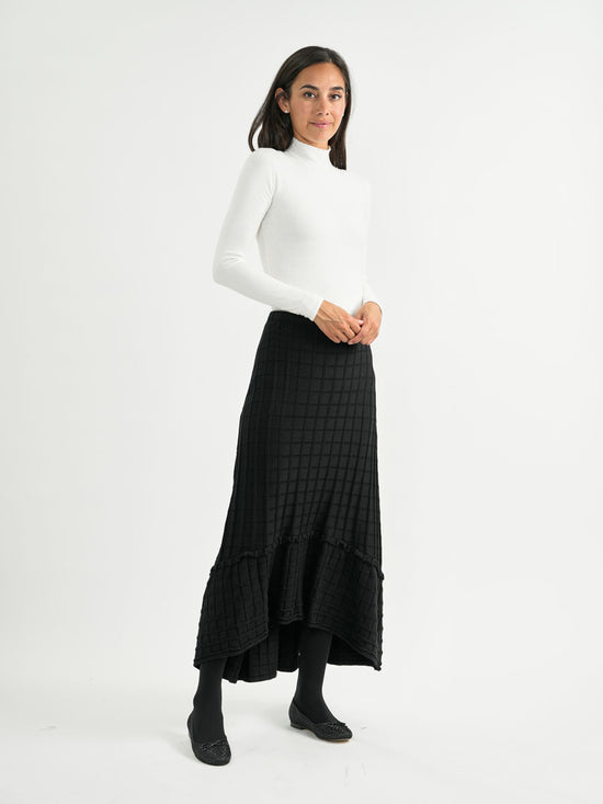 Black Square Textured Knit Hi-Lo Midi Skirt With Tier