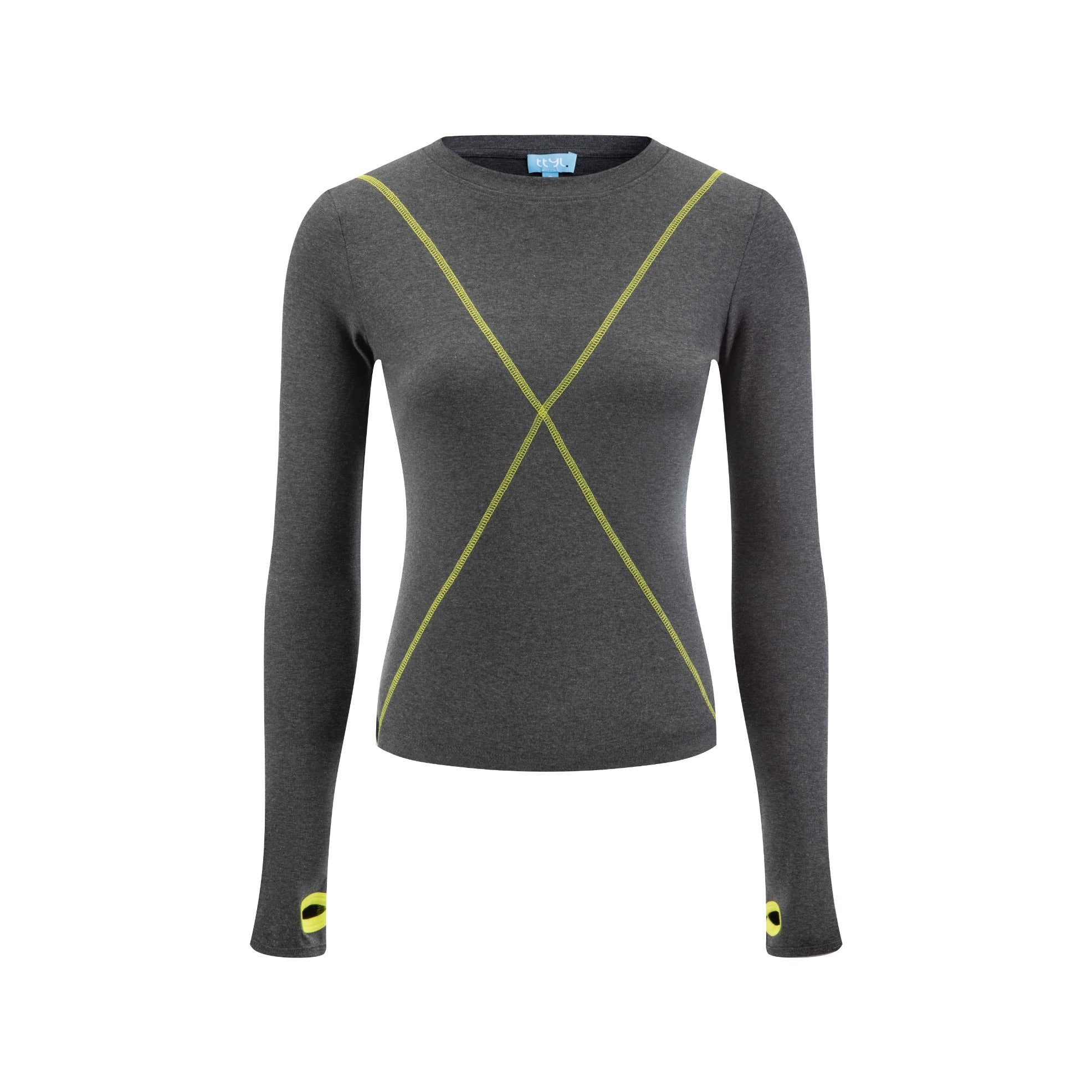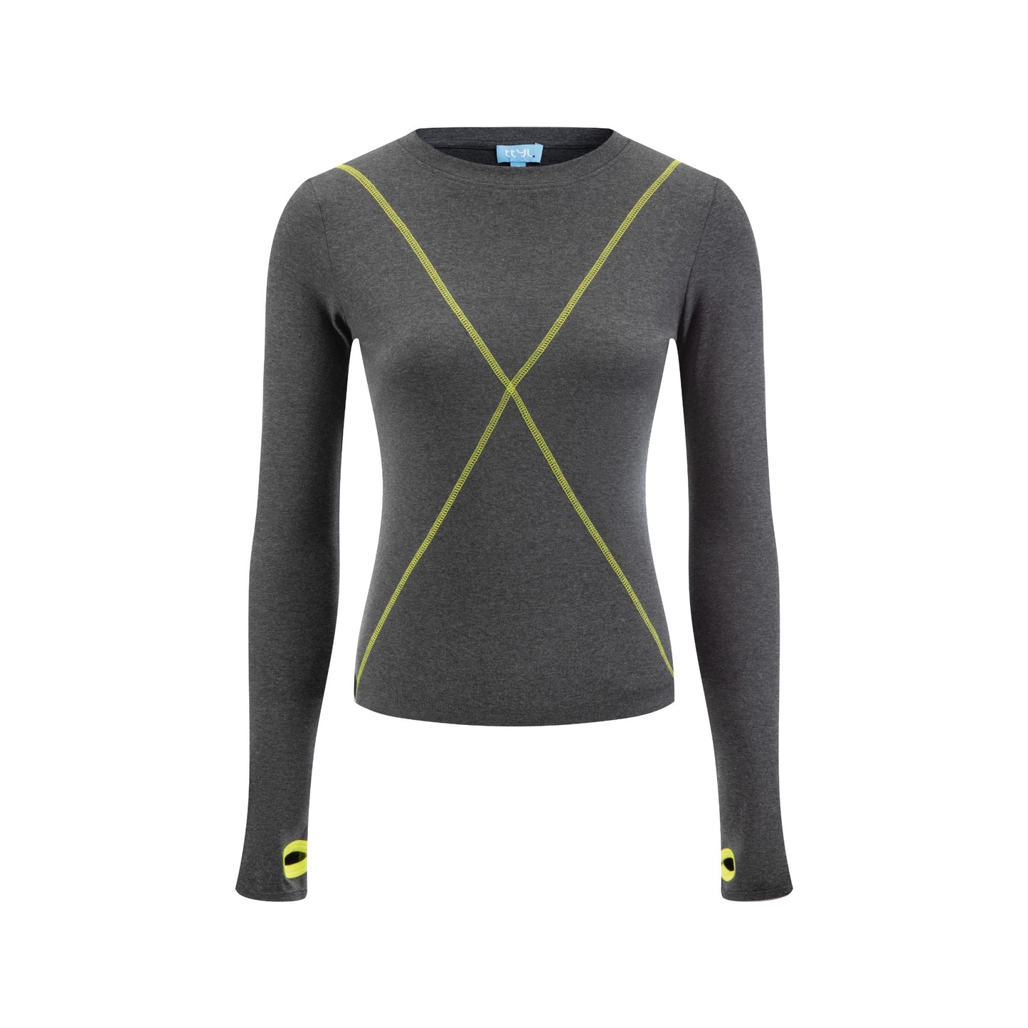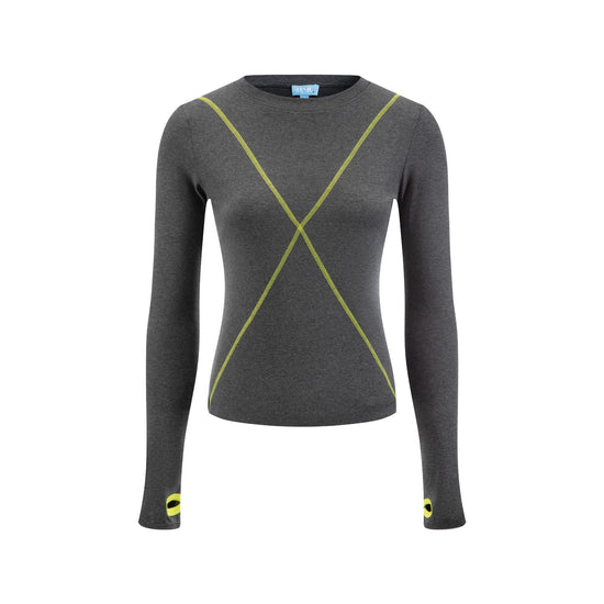 Thumbhole Criss-Cross Exposed T-Shirt - Dark Grey