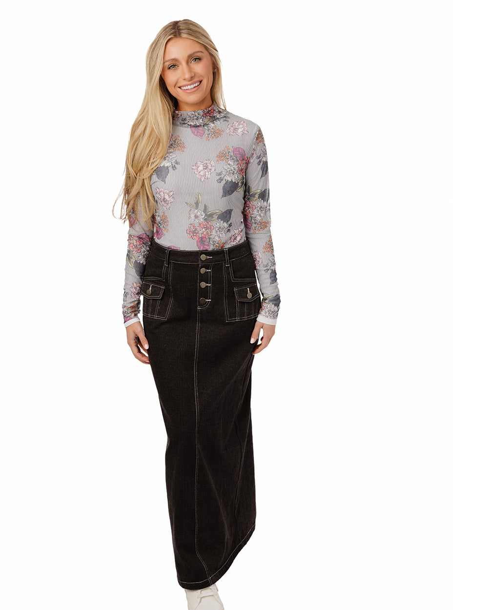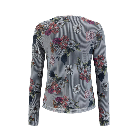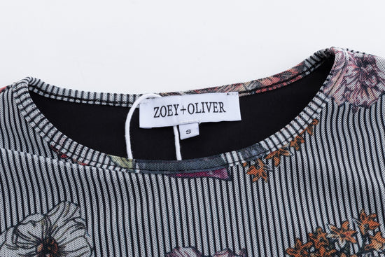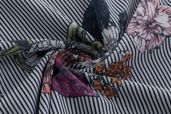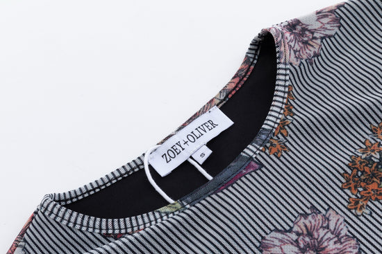Black Stripes Flower Printed Mesh Top